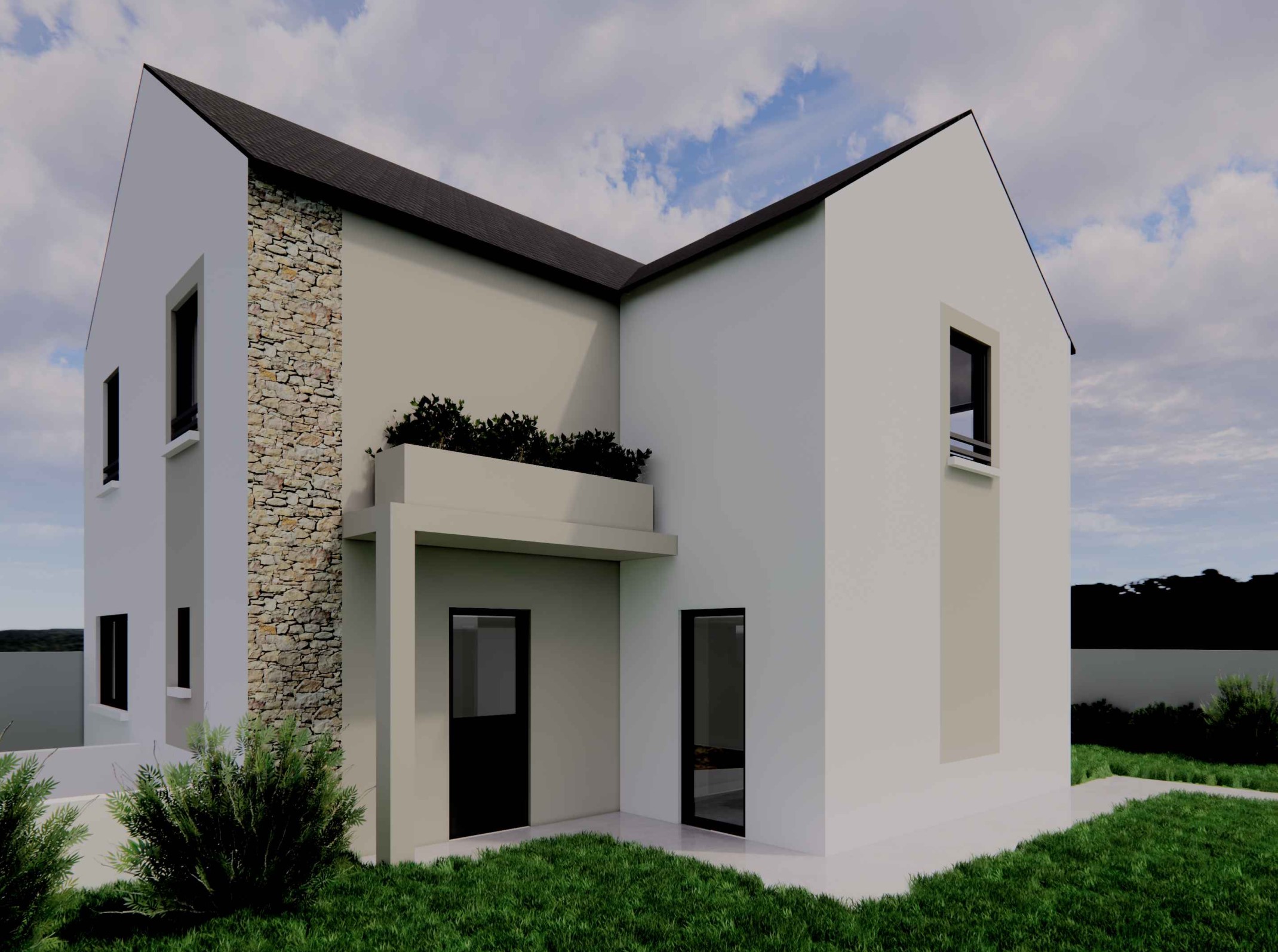 Maison individuelle moderne de 110 m² respectant la norme RE2020, équipée: